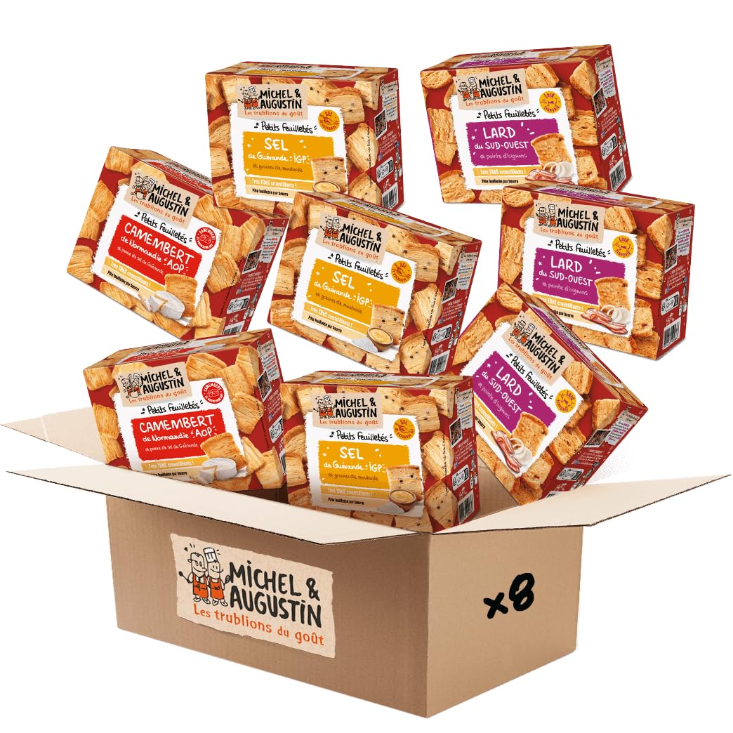 Michel & Augustin – Coffret Petits Feuilletés Apéritifs 8×80g – Camembert, Lard, Sel de Guérande – Idéal à Partager, Coffret Terroir, Cadeau Gourmand