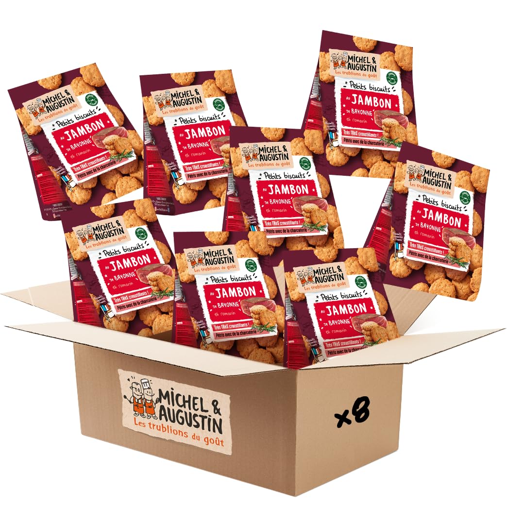 Michel & Augustin – Petits Biscuits Salés au Jambon de Bayonne IGP et Romarin – Biscuits Apéritifs Très Très Croustillants – Fabriqués en France – 90g x 8