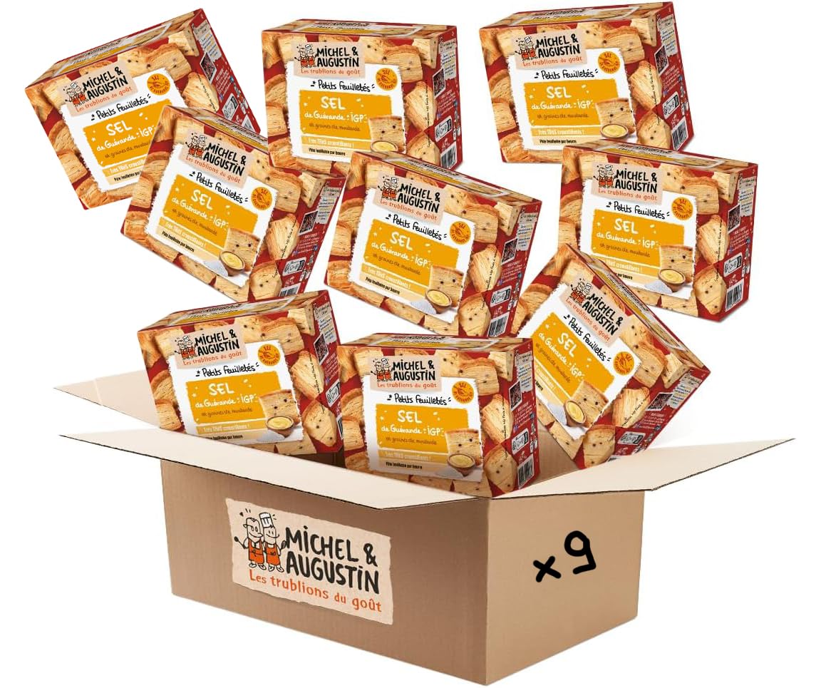 Michel & Augustin – Petits Feuilletés au Sel de Guérande IGP et Moutarde de Dijon – Pâte Pur Beurre – Format Apéritif – Très Croustillants – 80g x 9