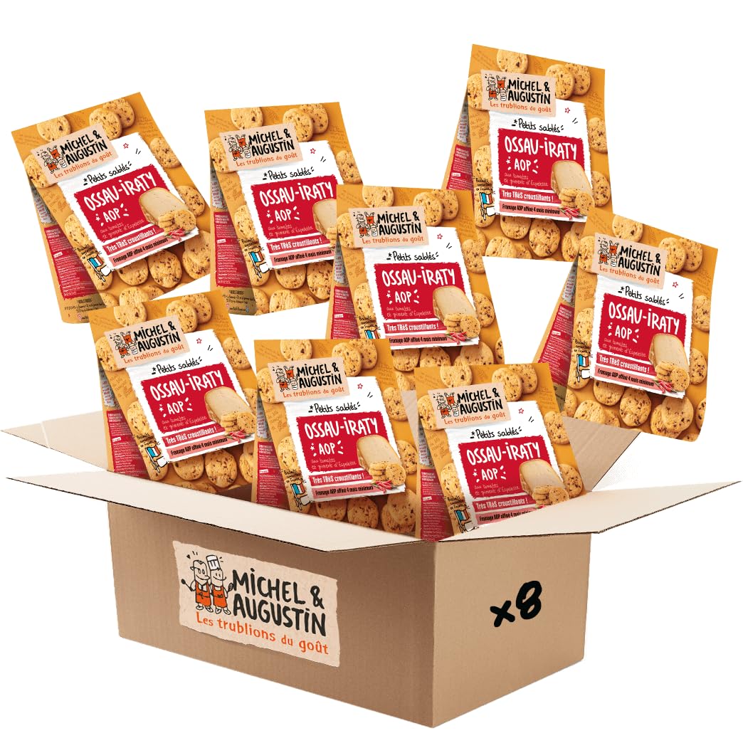 Michel & Augustin – Petits Sablés Salés à l’Ossau-Iraty AOP, Tomates & Piment d’Espelette – Biscuits Apéritifs Gourmands – Fabriqués en France – 100g x 8