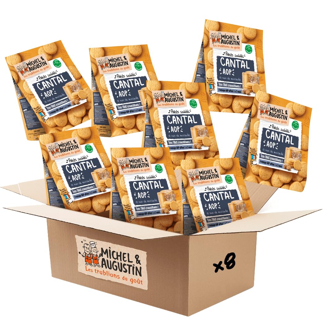 Michel & Augustin – Petits Sablés Salés au Cantal AOP et Noix de Muscade – Biscuits Apéritifs Gourmands – Fabriqués en France – 100g x 8