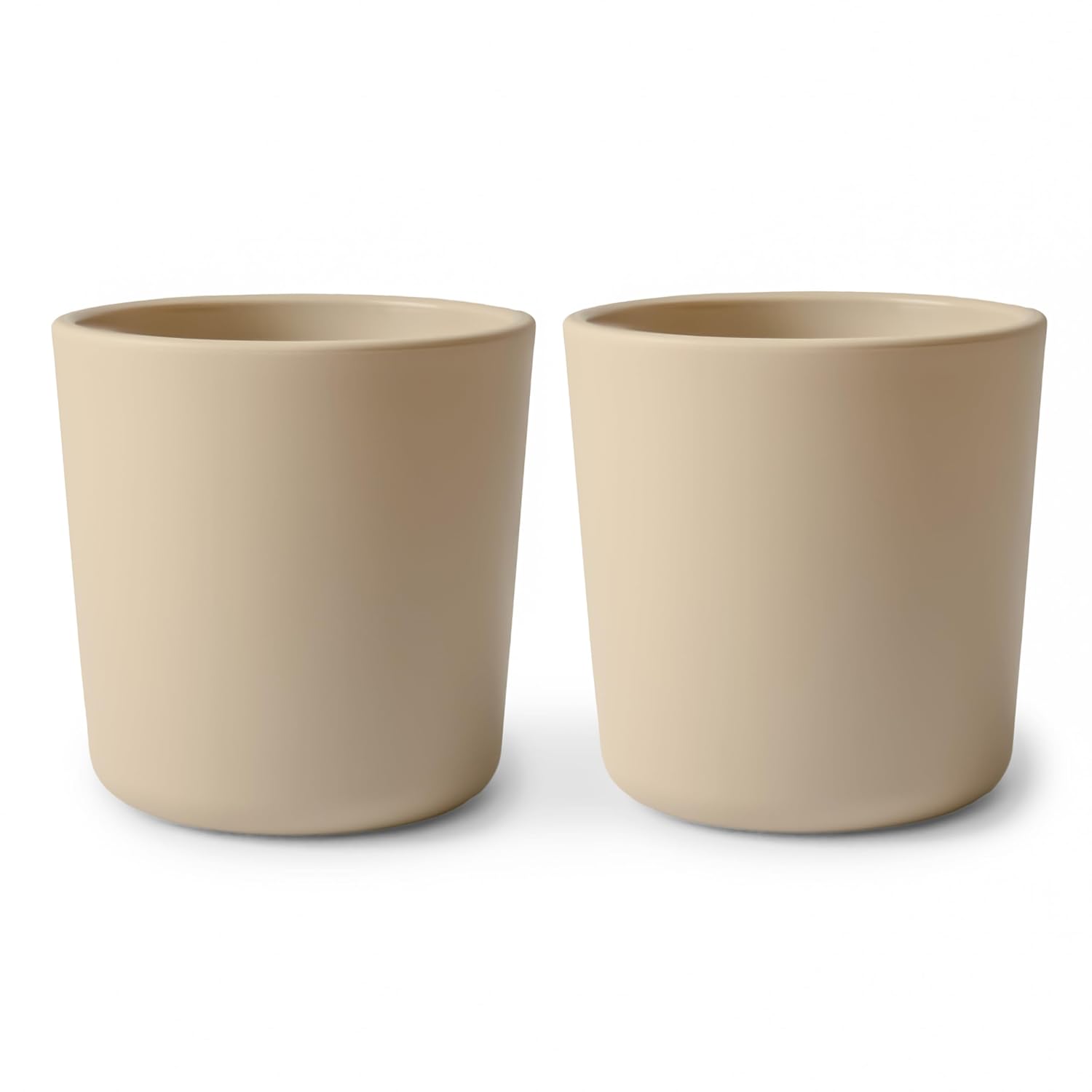 mushie Tasse de vaisselle pour enfants | Ensemble de 2 tasses de table réutilisables | Résistantes au lave-vaisselle et au micro-ondes | Facile à tenir pour l’enfant Fabriqué au Danemark | Vanilla