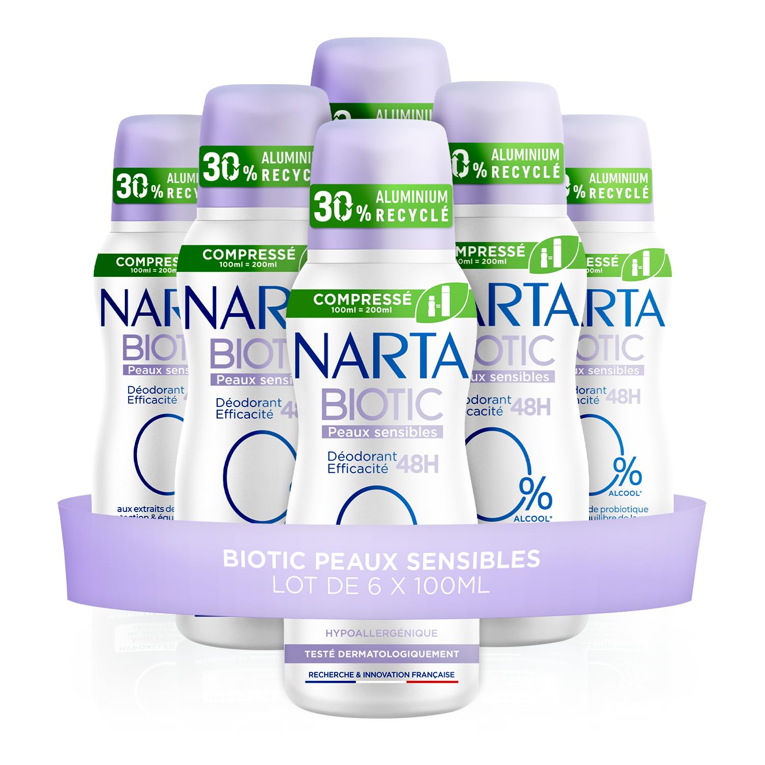 Narta – Déodorant Compressé – Biotic Peaux Sensibles – Lot de 6 x 100 ml