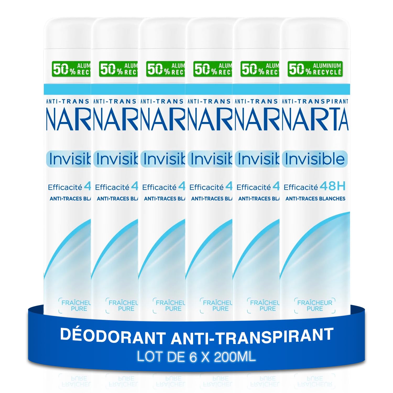 NARTA – Déodorant Femme – Invisible Anti-Transpirant Spray Efficacité 48h Anti-Traces Blanches Sans Alcool – lot de 6x200ml