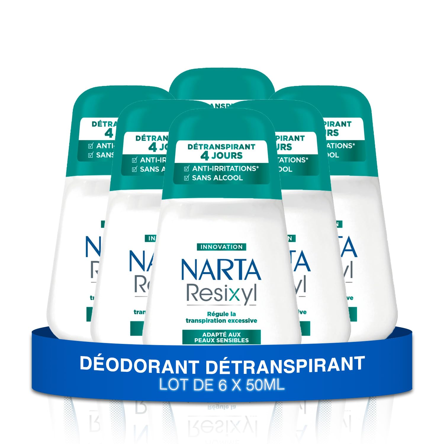 NARTA – Déodorant Femme – Resixyl Détranspirant Bille 4 jours Sans Alcool – lot de 6x50ml