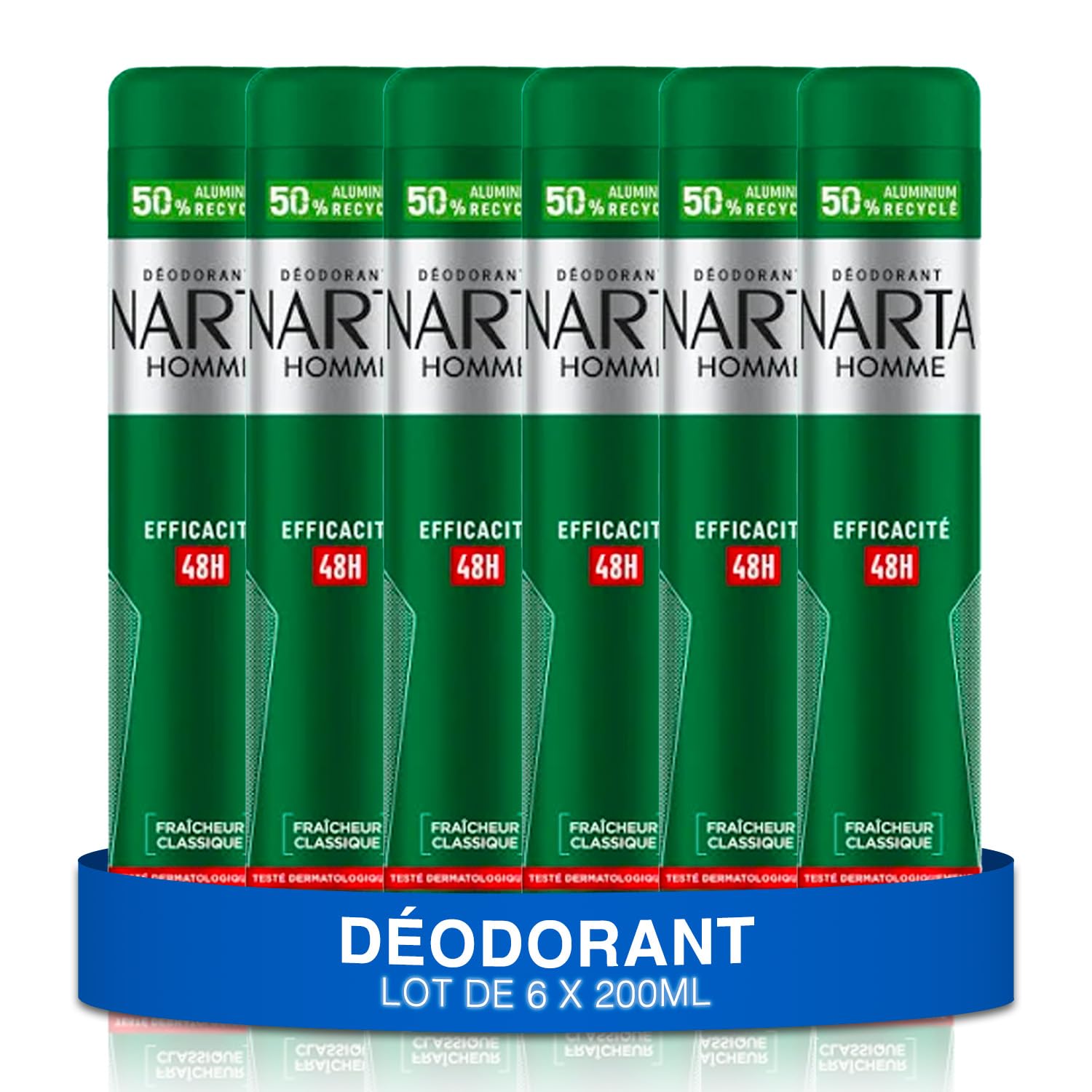 NARTA – Déodorant Homme – Fraîcheur Classique Spray Efficacité 48h – lot de 6x200ml