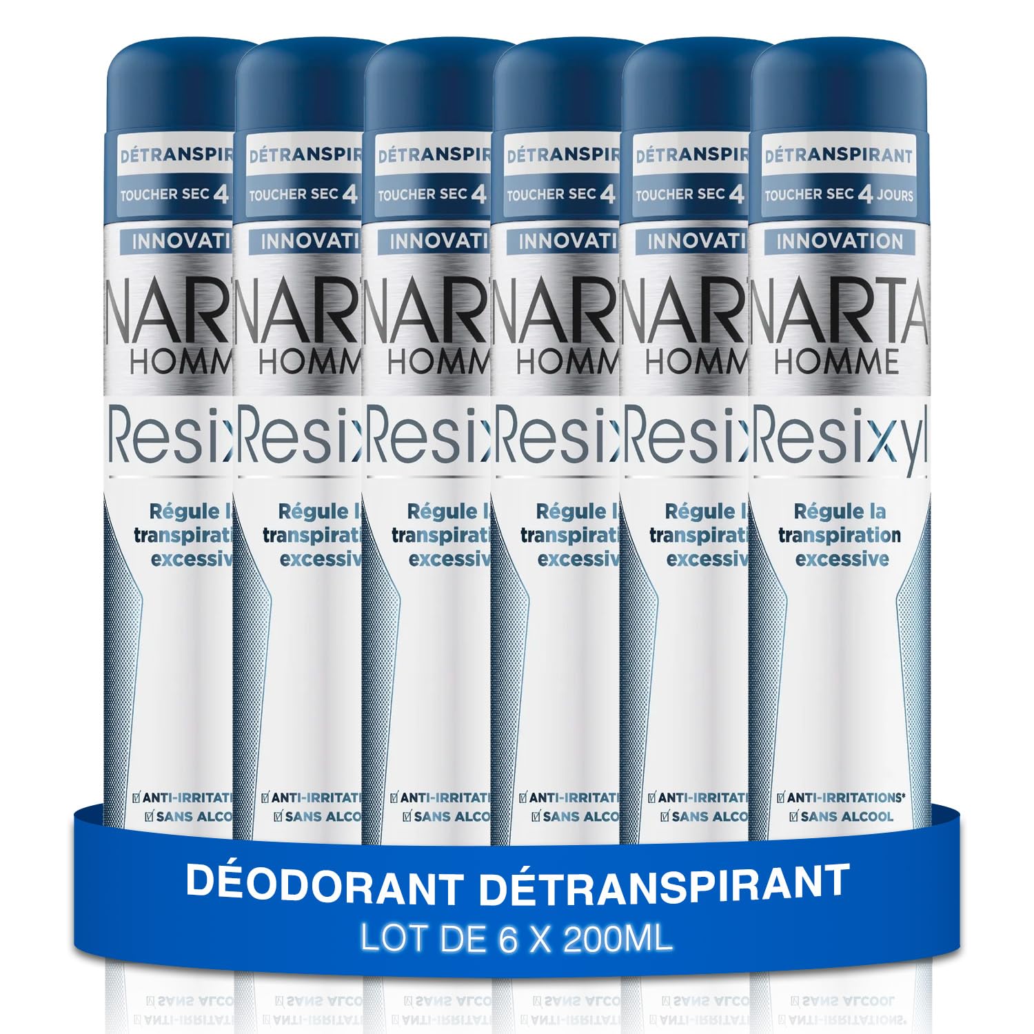 NARTA – Déodorant Homme – Resixyl Détranspirant Spray Compressé Toucher Sec 4 Jours Anti-Irritations Sans Alcool – lot de 6x200ml
