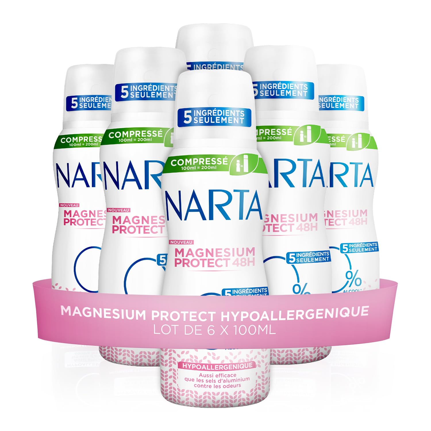 Narta – Déodorant Spray Compressé – Magnesium Protect Hypoallergénique – Lot de 6 x 100 ml