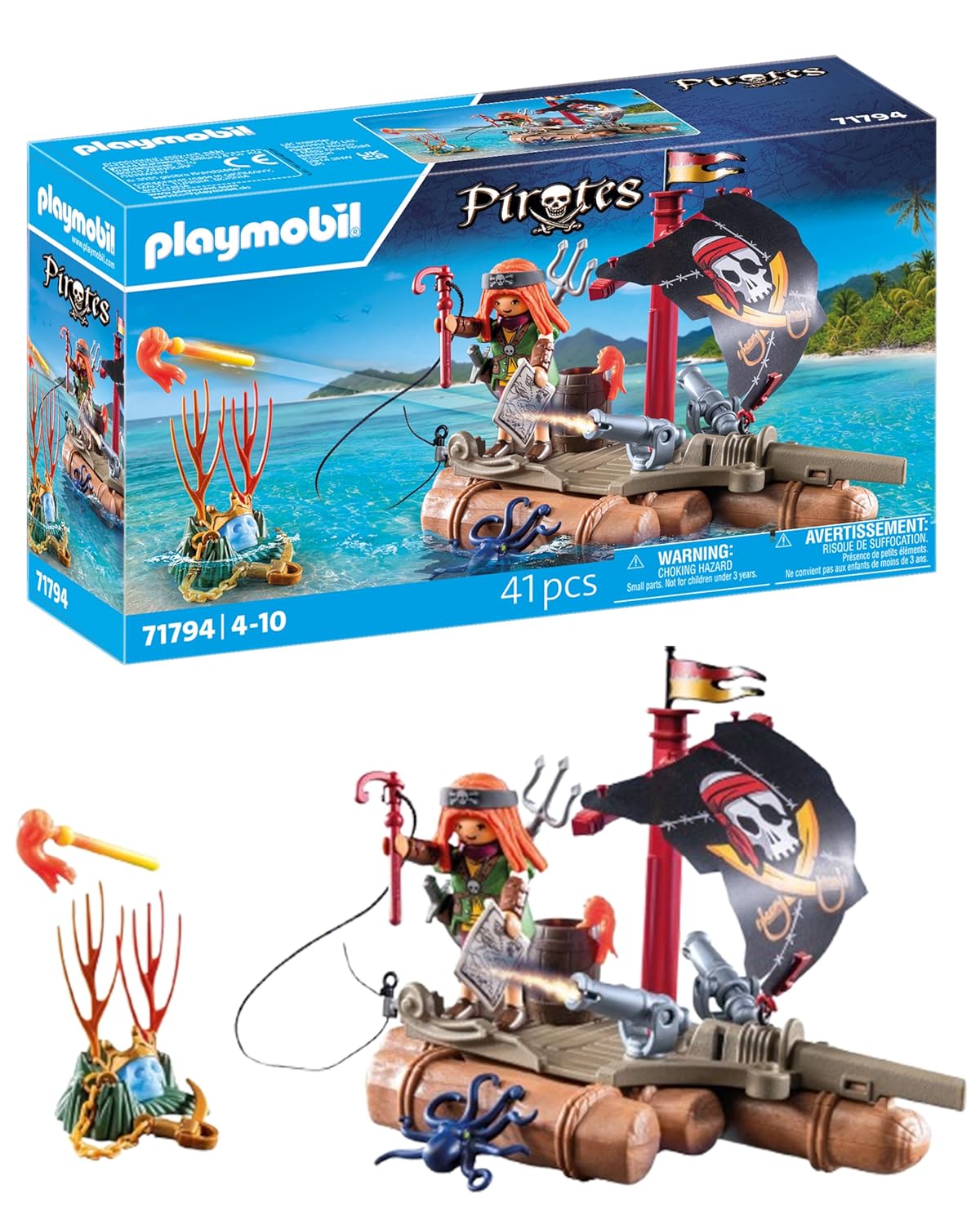 Playmobil | Pirates | Récupération de trésor sur Radeau Pirate | Jouet de Pirates | Figurine de Pirate | Jouet pour Enfants dès 4 Ans | 71794