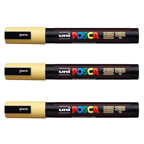 Posca Lot de 3 marqueurs PC-5M Uni-Ball (gamme complète de 35 couleurs disponibles) jaune paille