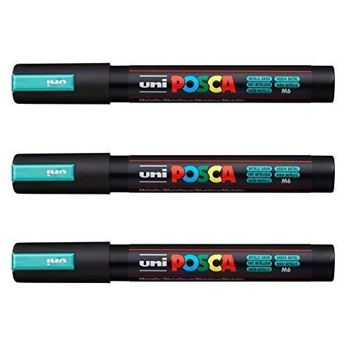 Posca Lot de 3 marqueurs PC-5M Uni-Ball (gamme complète de 35 couleurs disponibles) vert métallisé