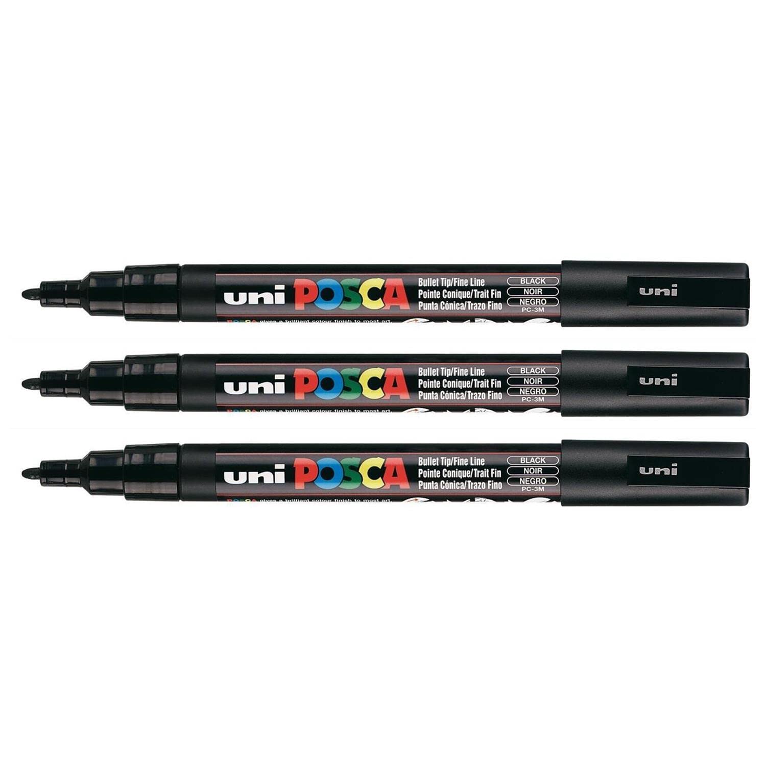 POSCA Lot de 3 Marqueurs pointe conique fine POSCA PC3M 0,9-1,3mm Noir