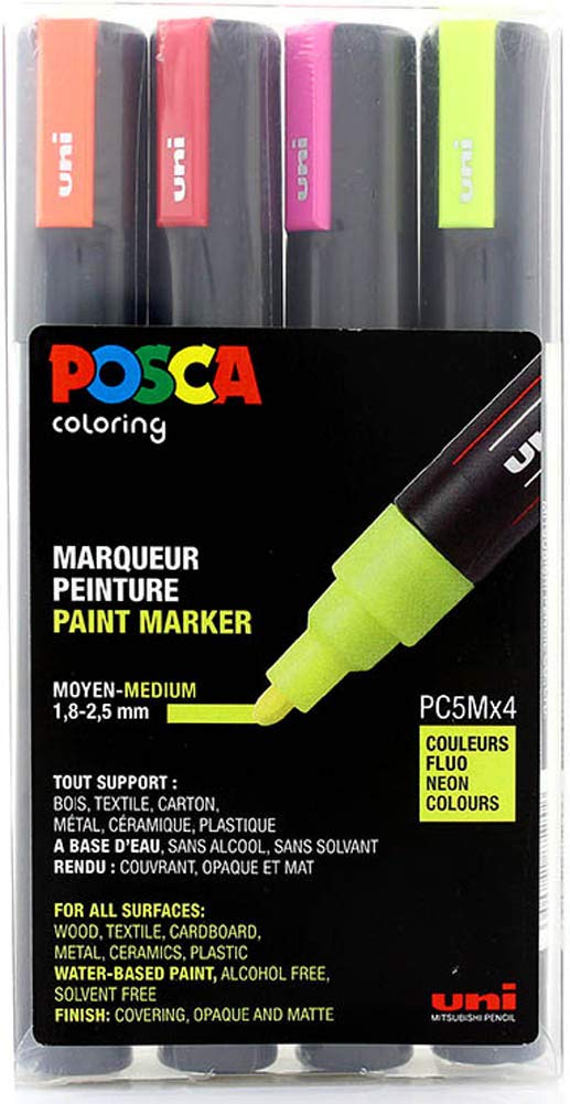 POSCA Marker Set PC 5M 4 Neon Colours Paint Lack Acryl Kit Box
