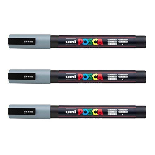 Posca – Marqueurs PC-3 M Uni-Ball – Gamme complète de 40 couleurs disponibles (Lot de 3) gris