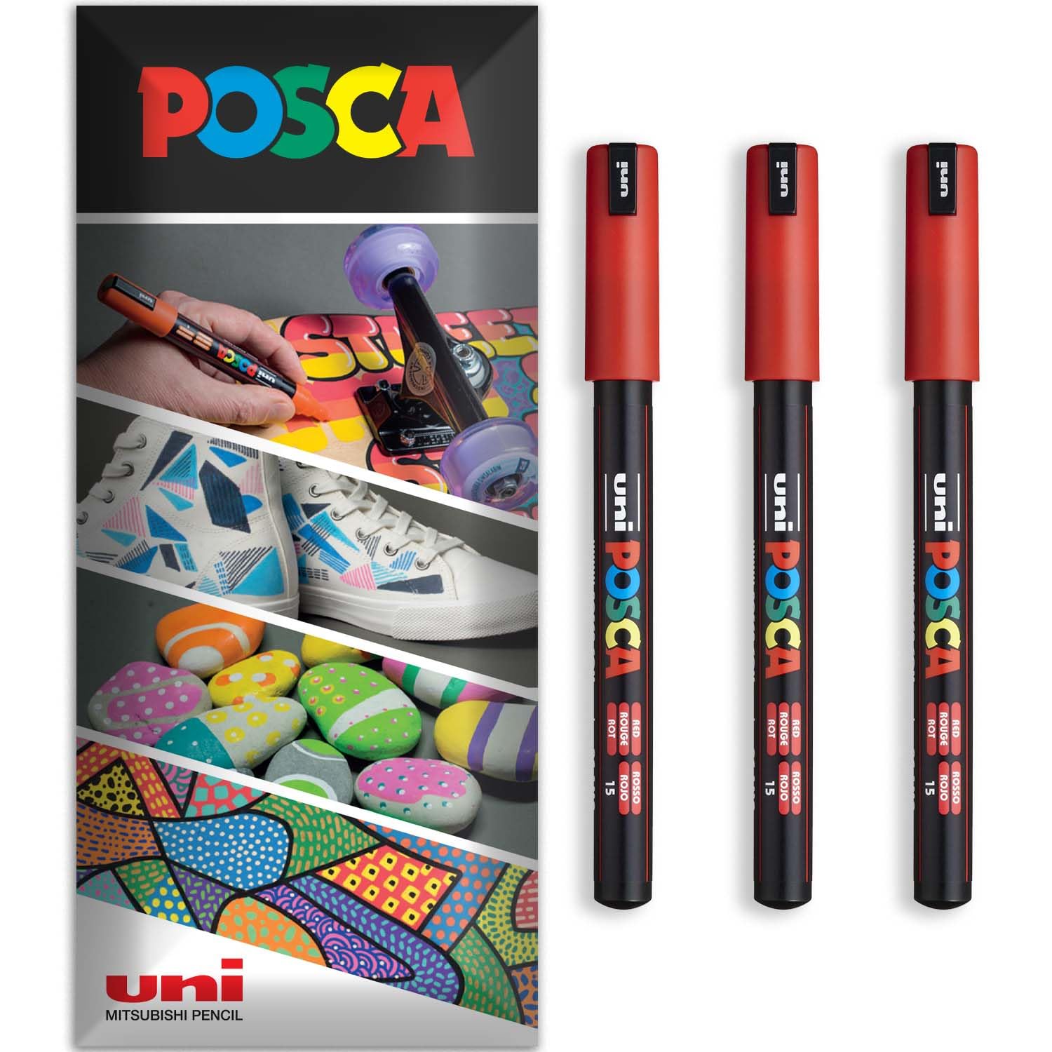 Posca Marqueurs permanents à base d’eau – Utilisation multi-surfaces – PC-1MR – Lot de 3 stylos dans un étui (rouge)