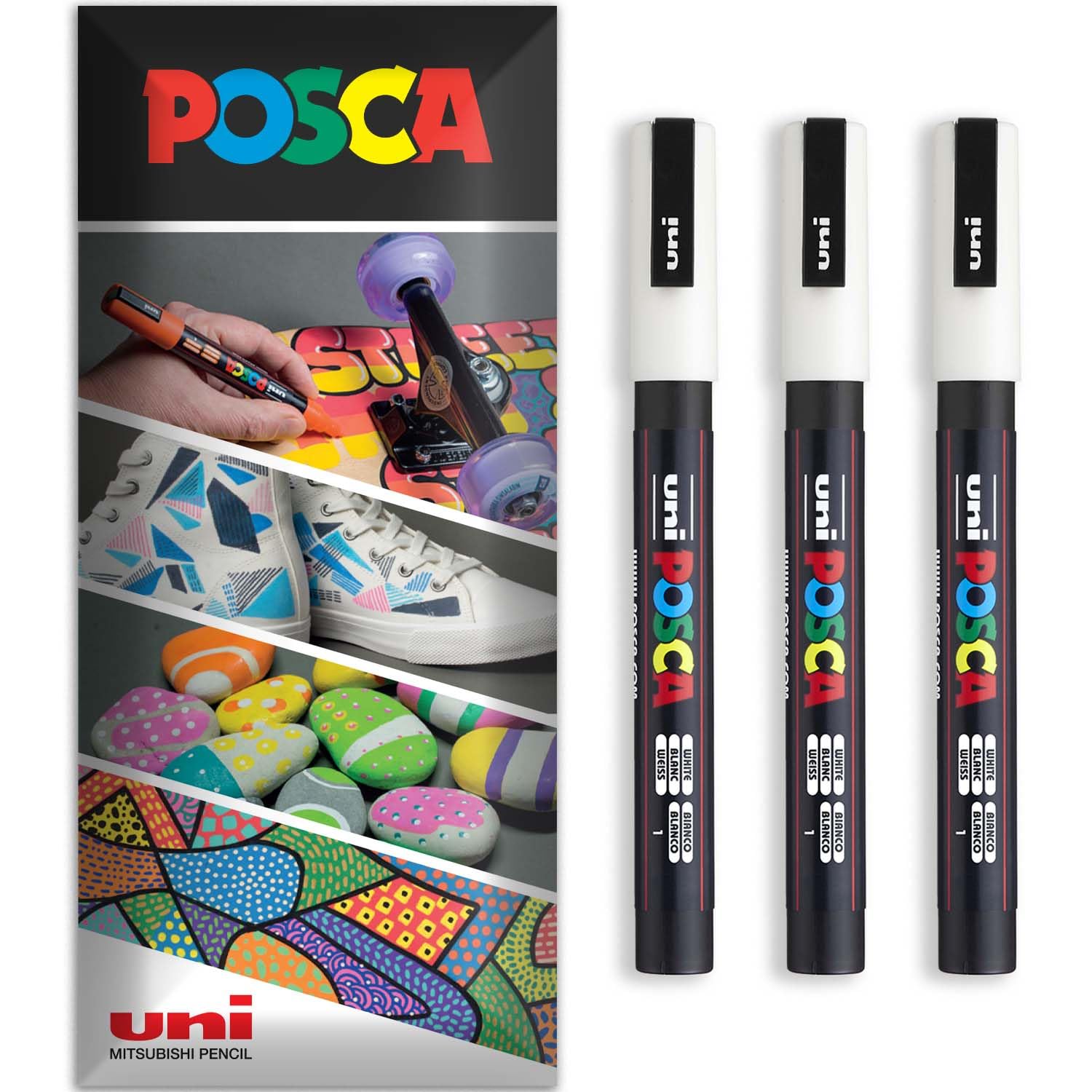 Posca Marqueurs permanents à base d’eau – Utilisation multi-surfaces – PC-3M – Lot de 3 stylos dans un étui (blanc)