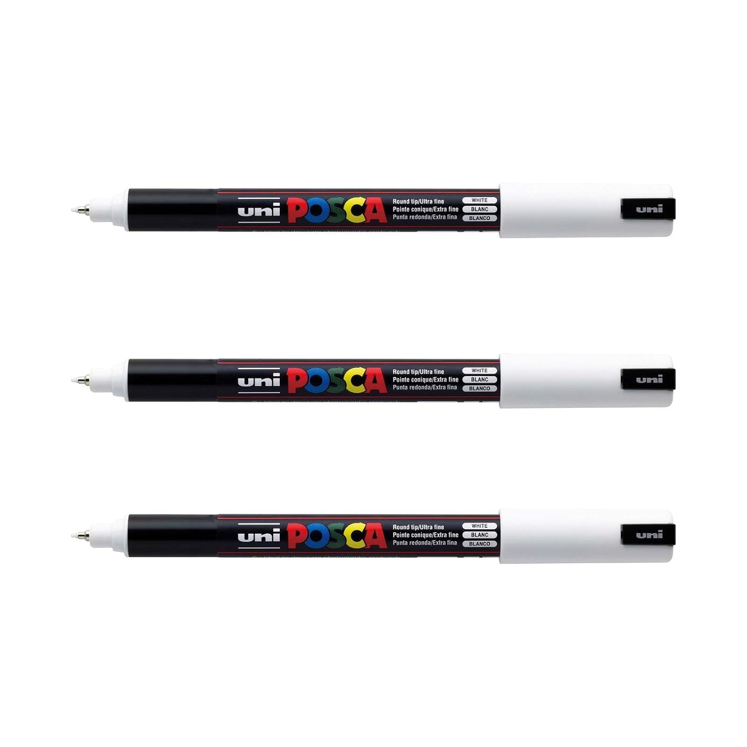 POSCA – Mitsubishi Pencil – 3 Marqueurs Blanc PC1MR – Pointe Extra Fine Calibrée 0,7 mm – Marqueur Peinture À Base d’Eau – Tout Support, Papier, Textile, Verre, Galet