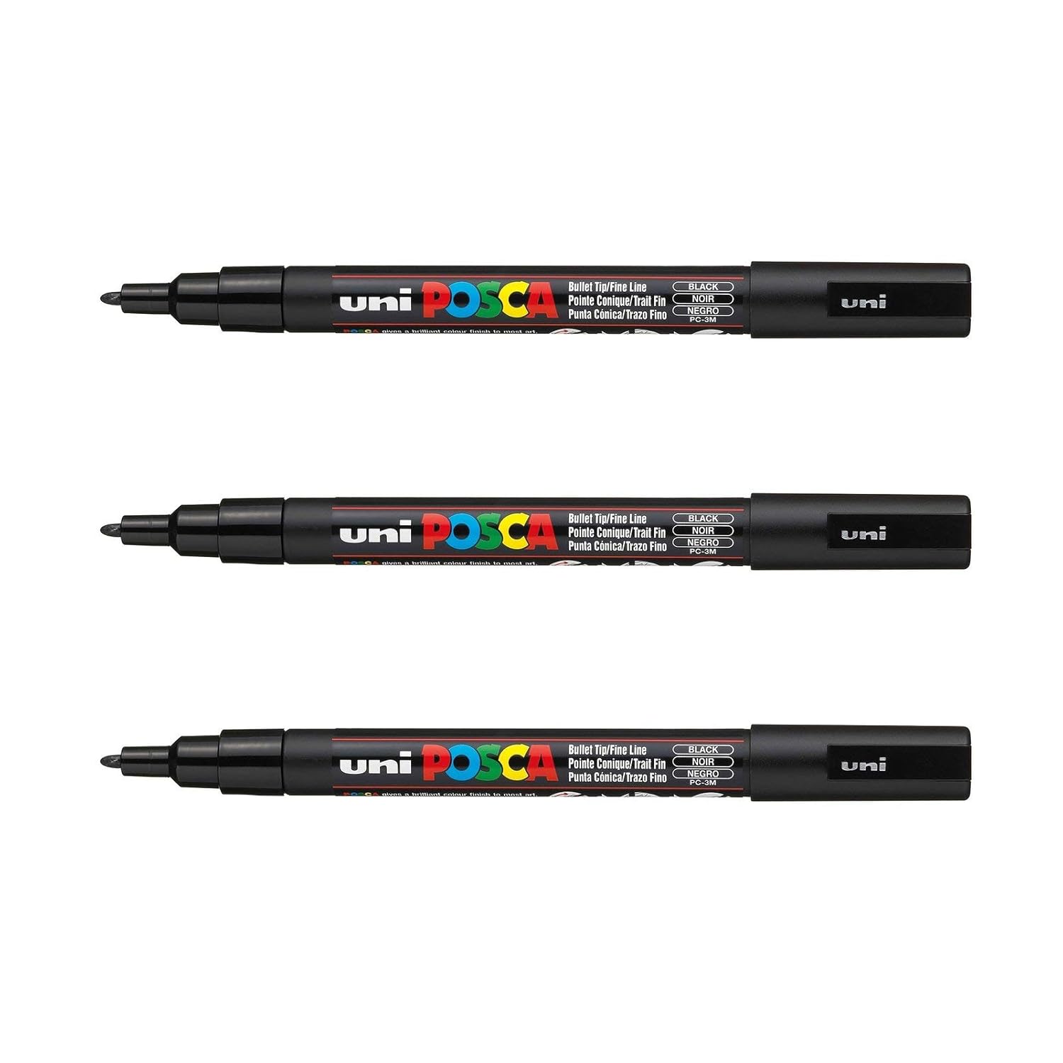 POSCA – Mitsubishi Pencil – 3 Marqueurs Noir PC-3M – Pointe Conique Pointe Fine – Marqueur Peinture à Base d’Eau – Tout Support – Pour Papier, Textile, Verre, Galet, Bois