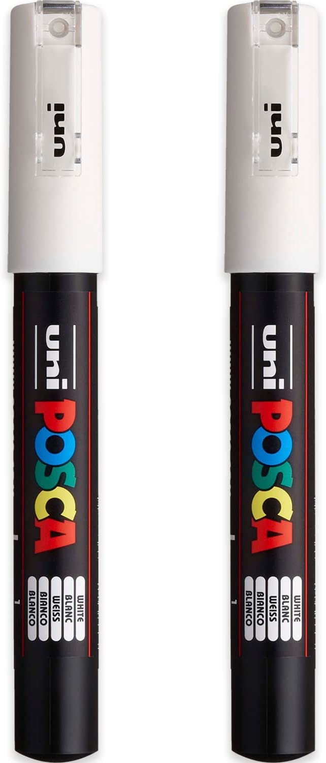 Posca PC-1M Lot de 2 marqueurs permanents à base d’eau pour peinture multi-surfaces Pointe de 0,7 mm Encre blanche