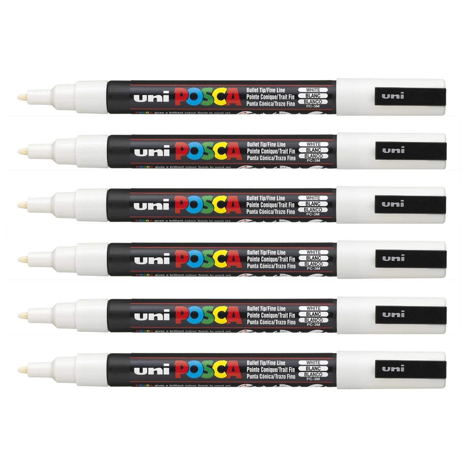 POSCA PC- 3 m-Uni blanc marqueurs peinture à pointe ogive 1,5 mm pointe écrit sur toutes les surfaces en verre Pierre en Métal Bois Plastique (Lot de 6)