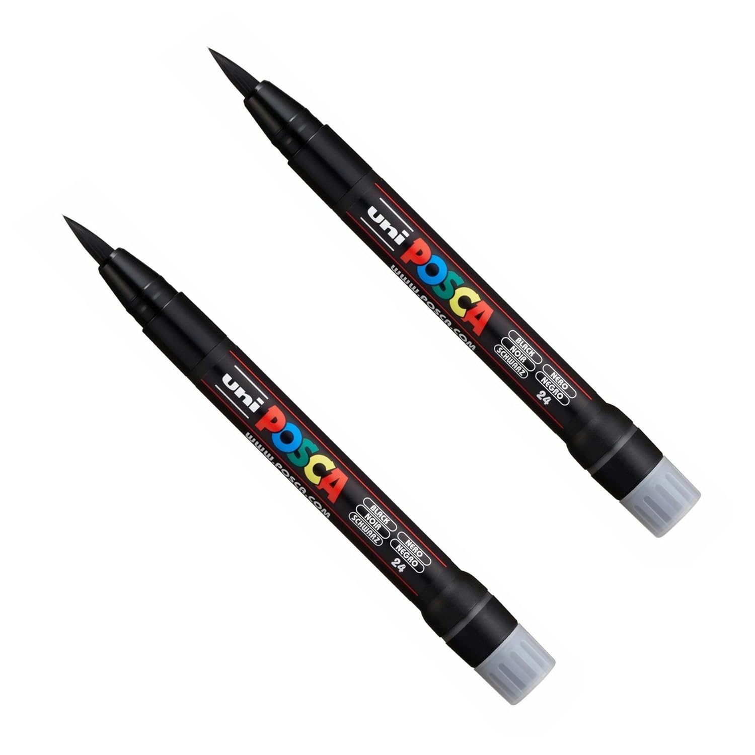 Posca PCF-350 Lot de 2 marqueurs à peinture à pointe pinceau pour tissu, verre, métal Noir