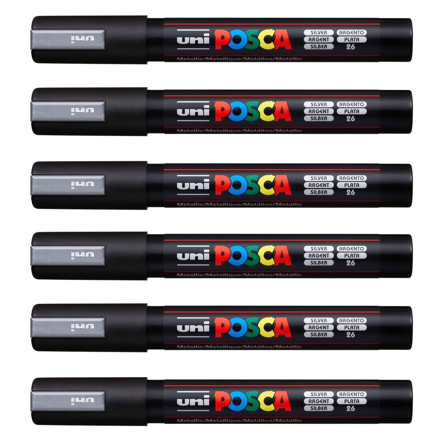 POSCA Uni-Ball PC-5M Lot de 12 stylos Argenté métallisé