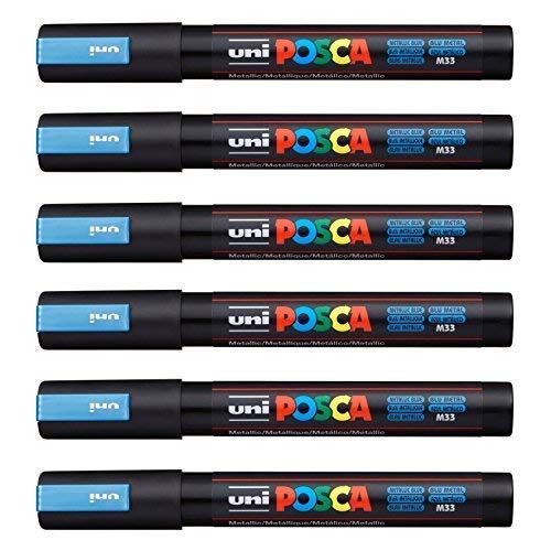 POSCA Uni-Ball PC-5M Lot de 12 stylos Bleu métallisé