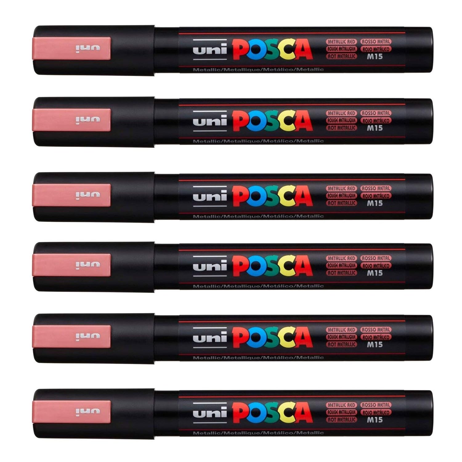 POSCA Uni-Ball PC-5M Lot de 12 stylos Rouge métallisé