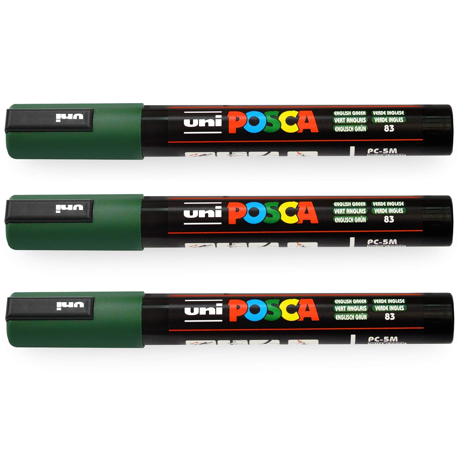 Posca Uni-Ball PC-5M Lot de 3 marqueurs à peinture Vert anglais 1,8-2,5 mm