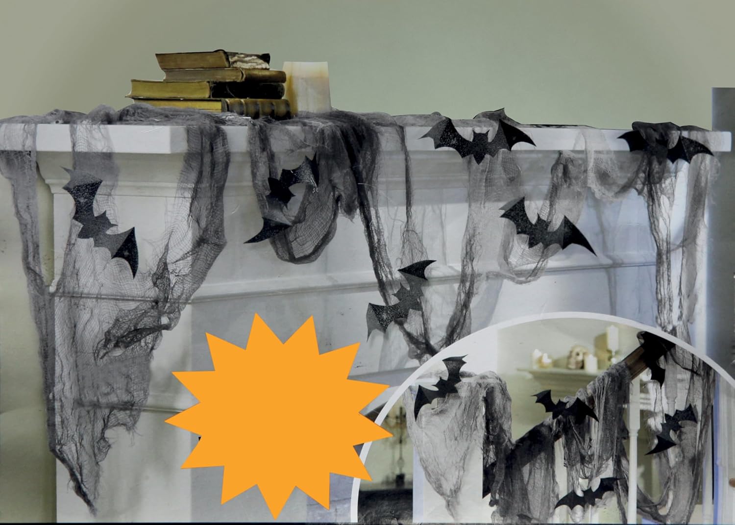 P’TIT Clown – 10120 – Tissu avec Chauve-Souris Gris et Noir – Largeur 400 cm – Accessoire de Décoration Halloween – Ambiance Effrayante – Idéal pour Décorer Maison Hantée, Tables ou Murs