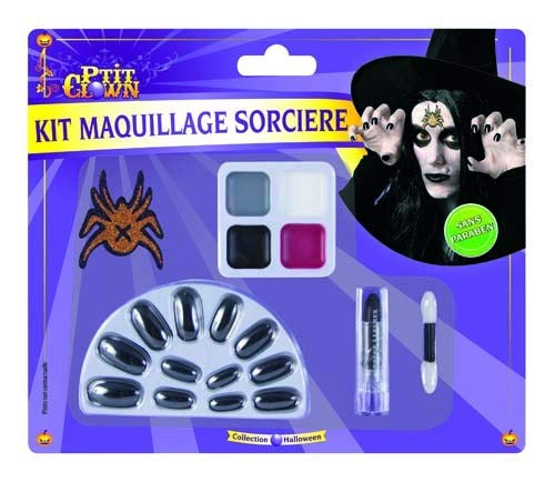 P’TIT CLOWN – 12800 – Kit de Maquillage Halloween Sorcière Araignée – Palette Complète avec Accessoires – Make-up – Adulte – Peinture Visage – Lavable – Non Toxique – Carnaval, Cosplay