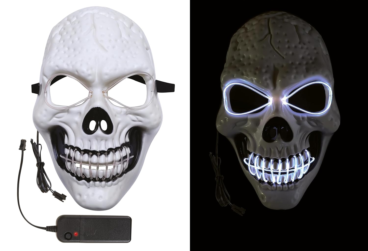 PTIT CLOWN – 15004 – Masque Squelette Lumineux – Adulte – Accessoire Déguisement – 3 Modes d’éclairage – Halloween, Carnaval, Cosplay, Dj