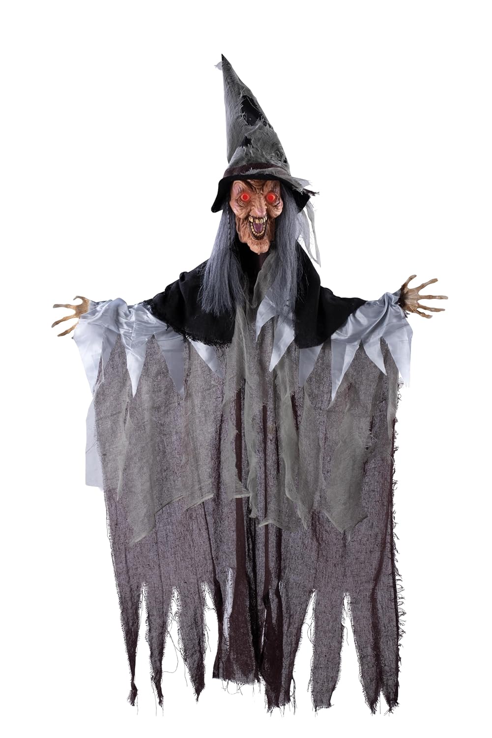 P’TIT CLOWN – 22227- Automate Halloween Animé – Animatronique – Animatronics – Sorcière à Suspendre – Animée, Sonore, Lumineuse – Décoration Effrayante – Piles Non incluses (3 x AA) – 140 cm