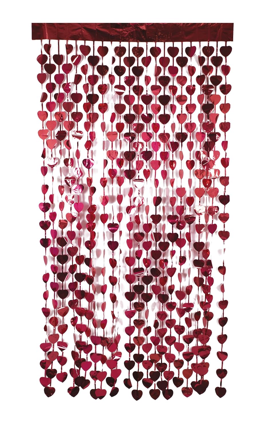 P’TIT Clown – 22652 – Rideau Lamé Cœurs Rouges – Déco à Suspendre – Accessoire Romantique Idéal pour Décoration Saint Valentin, Fiançailles, Mariage – 200×100 cm
