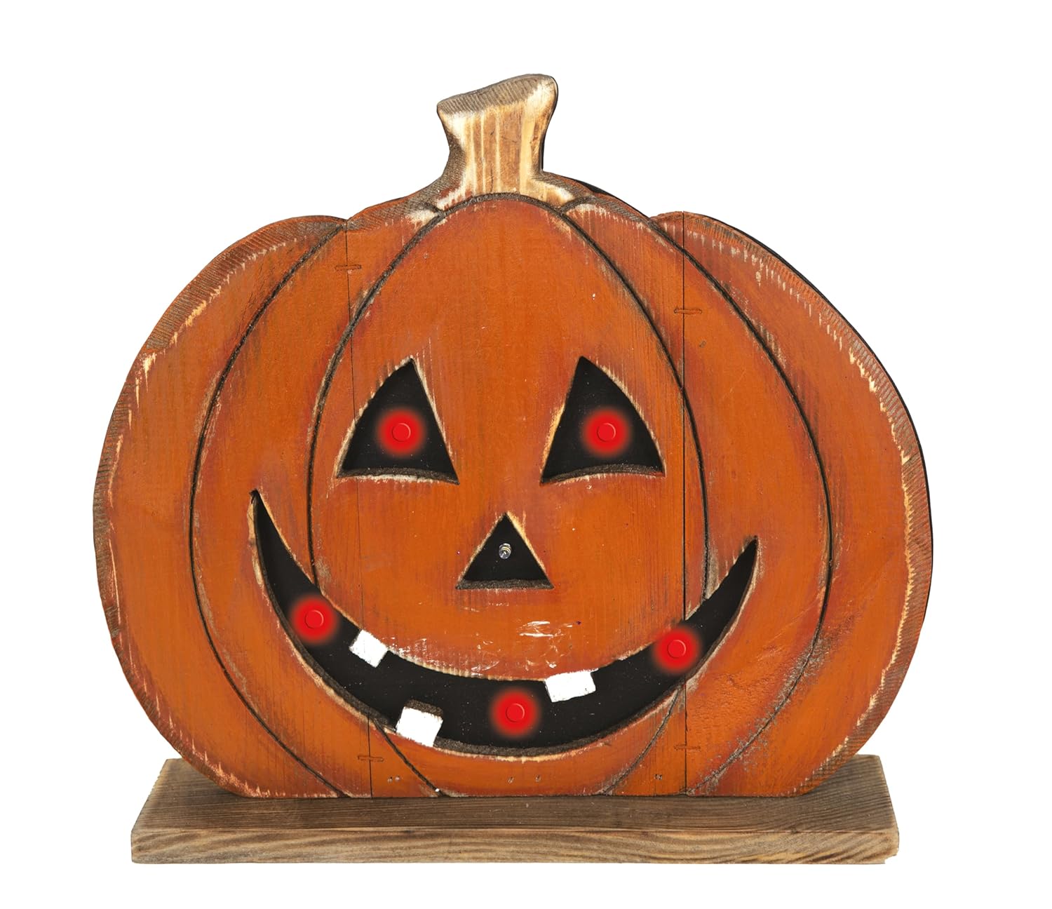 P’TIT CLOWN – 22967 – Citrouille Halloween Lumineuse – Décoration Automne Intérieur, Extérieur – Effet Éclatant – (Citrouille en Bois, 32 cm)