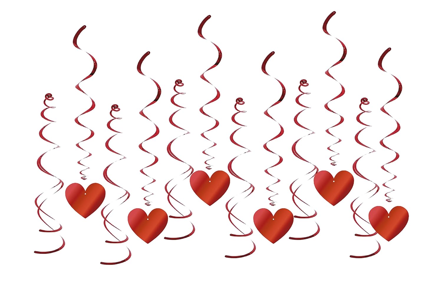 P’TIT CLOWN – 23269 – Spirales Métallisées à Suspendre – Cœurs Rouges – Lot de 12 – Idéal pour Décoration Saint Valentin, Fiançailles, Mariage – Faciles à Installer – Plastique – 13 x 14 cm