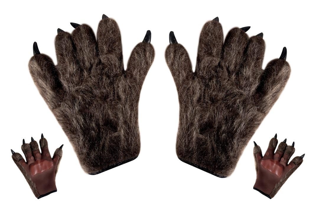 P’tit Clown – 23525 – Gants Loup-Garou Adulte – Accessoire Déguisement Halloween, Cosplay – Marron
