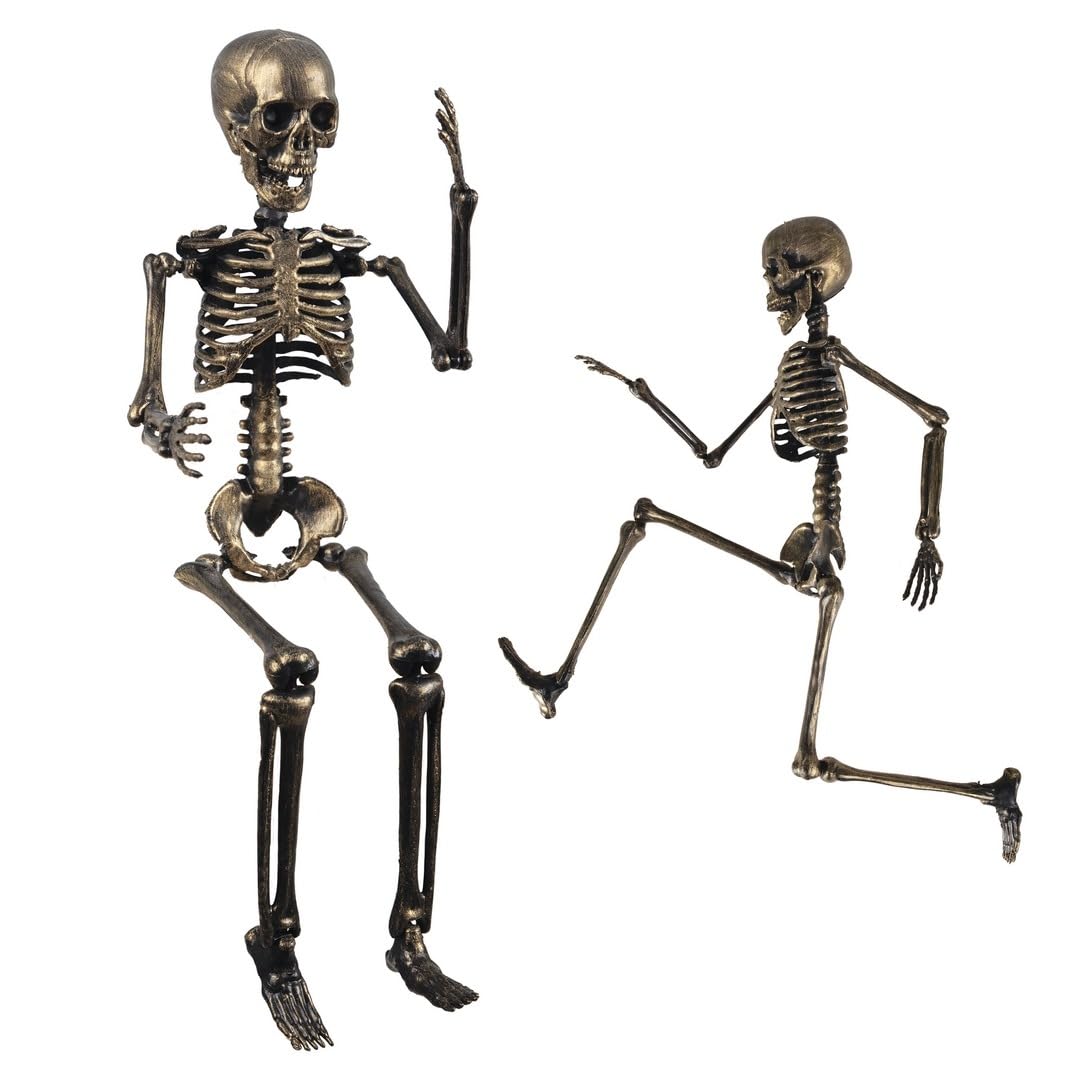 P’TIT Clown – 23569 – Squelette Articulé Décoratif Halloween – Effet Bronze Vieilli – Accessoire Maison Hantée, Fête à Thème, Décoration Effrayante – Plastique – 40 cm