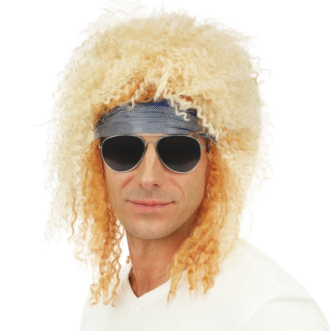 P’TIT Clown – 23750 – Perruque Rockeur Adulte – avec Bandeau – Accessoire de Déguisement Rock, Rétro – pour Costume Carnaval, Halloween, Cosplay, Fêtes à Thème – Cheveux Synthétiques – Blond