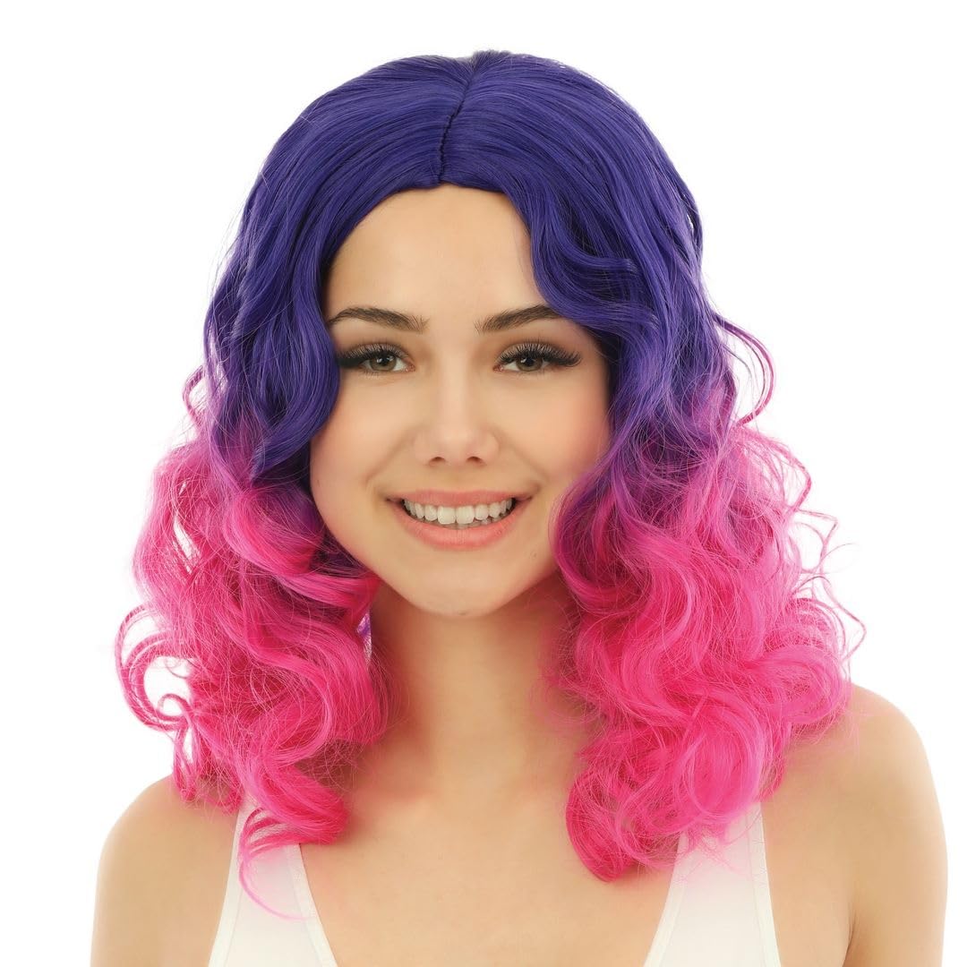 P’tit Clown – 24009 – Perruque Longue Bouclée – Accessoire Déguisement Carnaval, Fêtes, Soirées Costumées, Manga, Cosplay, Halloween – Cheveux Synthétiques Haute Qualité – Coiffable et Lisable – Rose