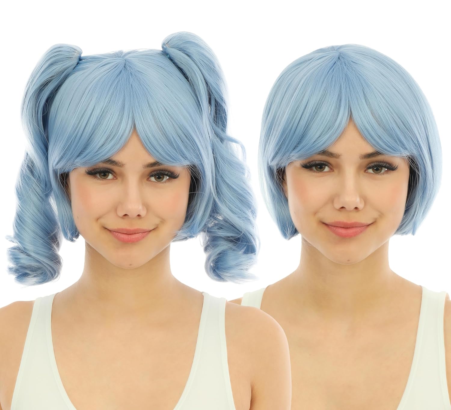 P’tit Clown – 24018 – Perruque Manga Femme Courte Couettes Détachables – Accessoire Déguisement Carnaval, Pride, Festivals, Cosplay – Cheveux Synthétiques Haute Qualité – Coiffable et Lisable