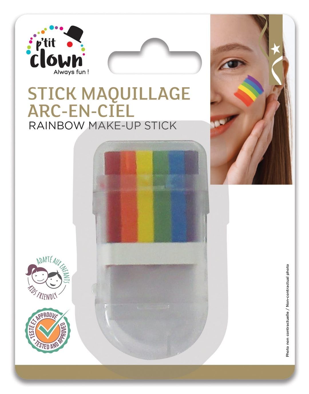P’TIT CLOWN – 63002 – Stick Maquillage Arc-en-Ciel – Fard Coloré Visage – Rainbow Make-up – Accessoire Pride, Fête, Carnaval, Enfants et Adultes – Facile à Utiliser