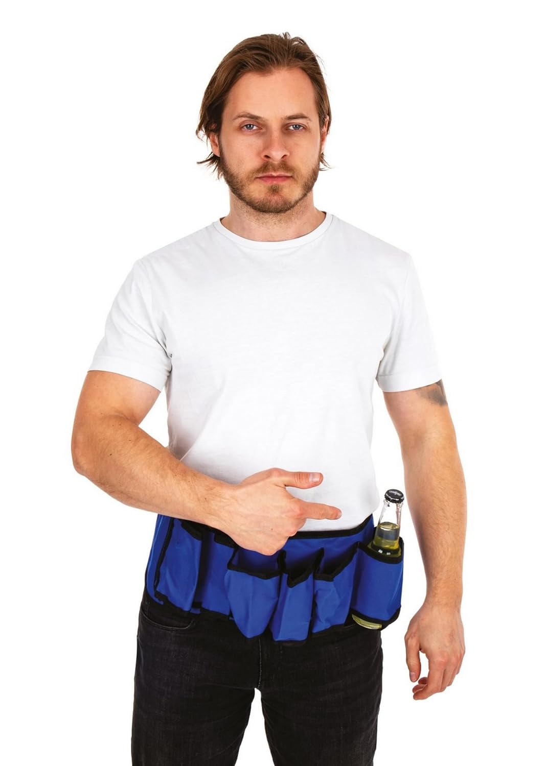 P’TIT Clown – 66617 – Ceinture Porte Bouteille – Accessoire Parfait pour EVG, Célébrations Sportives, Festivals – Polyester – Bleu