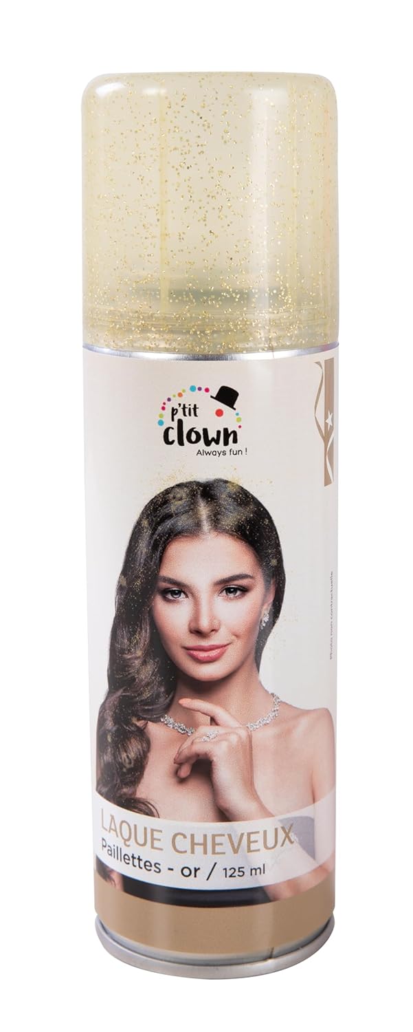 P’TIT CLOWN – 72521 – Spray laque cheveux à paillettes – 125 ml – or
