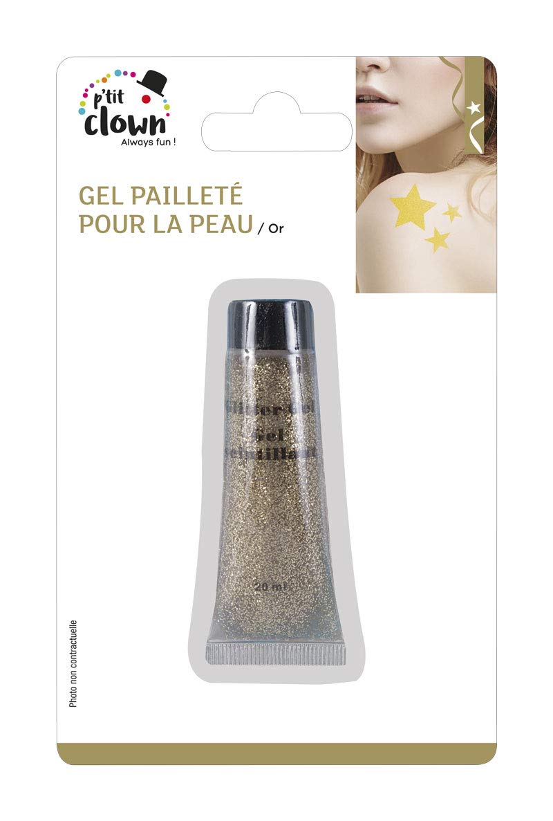 P’TIT CLOWN – 77701 – Gel Pailleté pour la Peau – Or – 20 ml – Maquillage Visage Adulte – Make-up – Peinture Corporelle – Non Toxique – Festival, Carnaval, Halloween, Anniversaire, Cosplay