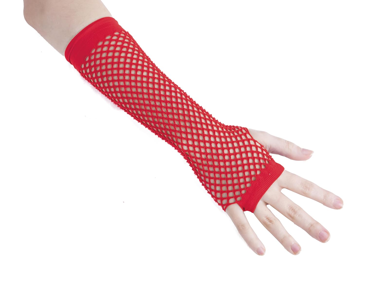 P’tit Clown – 90305 – Mitaines en Résille Longues – Sans Doigts – Accessoire de Déguisement – Pour Carnaval, Fêtes à Thèmes, Halloween, Nouvel An – Adulte, Taille Unique – Rouge – La Paire