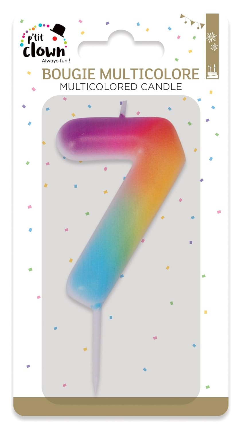 P’TIT CLOWN – Bougie Anniversaire Numérotée – Parfaite pour Décoration Gâteau – Fête Enfant, Adulte, Birthday Party (Multicolore, 7)