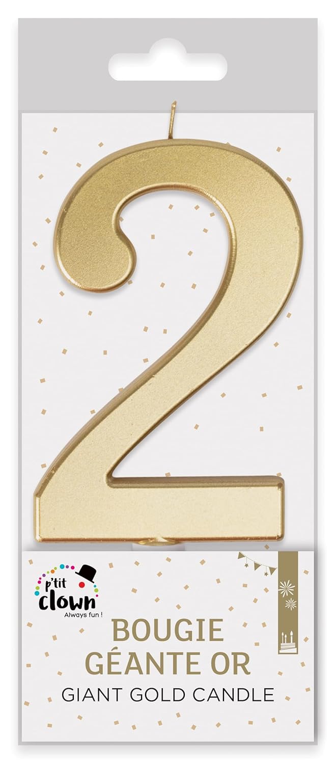 P’TIT CLOWN – Bougie Géante Anniversaire – Bougie Chiffre – Parfaite pour Décoration Gâteau – Fête Enfant, Adulte, Birthday Party – Hauteur : 13 cm – Or (2)
