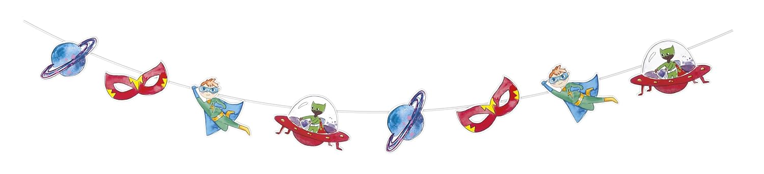 P’tit Clown CAM ET LEON – Accessoires Décoration d’Anniversaire Enfant – Thème Super Héros – Assiettes, Gobelets, Serviettes, Confettis, Sachets, Cartes d’Invitation (Guirlande – 3,6 m)