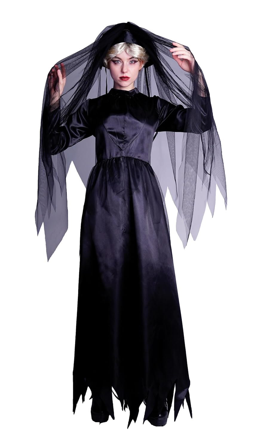 P’TIT CLOWN – Costume Mariée Fantôme – Déguisement Adulte Parfait pour Halloween, Fêtes Costumées et Évènements à Thème – Noir (S-M)